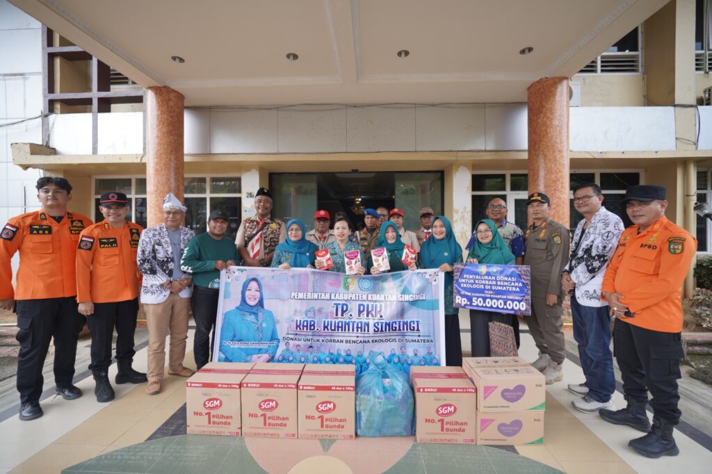 - TP-PKK Kuansing: Menyerahkan donasi berupa uang tunai yang diharapkan dapat membantu kebutuhan logistik dan dapur umum di lokasi pengungsian.